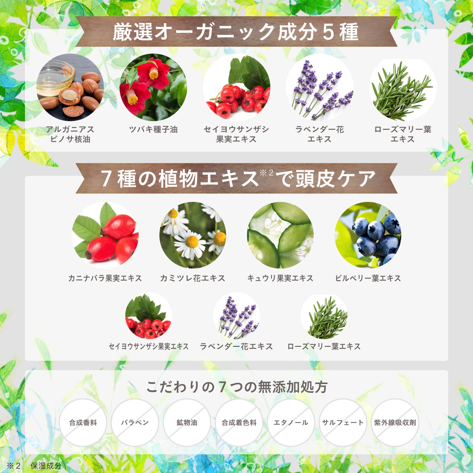 成分表示:塩化Na、水、オレフィン(C14-16)スルホン酸Na、コカミドDEA、コカミドプロピルベタイン、グリセリン、クエン酸、マンニトール、セルロース、酢酸トコフェロール、ヒドロキシプロピルメチルセルロース、BG、アルガニアスピノサ核油、ツバキ種子油、ホホバ種子油、海シルト、カニナバラ果実エキス、セイヨウサンザシ果実エキス、ラベンダー花エキス、ローズマリー葉エキス、カミツレ花エキス、キュウリ果実エキス、ビルベリー葉エキス、グンジョウ、フェノキシエタノール、ティーツリー葉油、ハッカ葉油